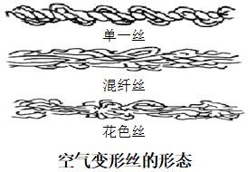 空气变形纱:外表有大小不同的丝圈,使其膨松、手感好,有类似短纤纱的特征;